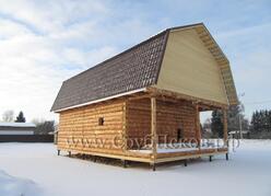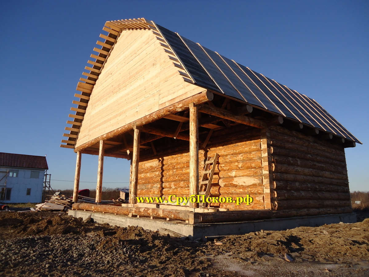 Выбор материала для кровли остается за Заказчиком. Рекомендуется ставить сруб под усадку  покрытый рубероидом, но соблюдая небольшие строительные приемы (такие например, как установка компенсаторов усадки), можно покрыть крышу на чистовую сразу после монтажа сруба . Подробнее о кровельных работах вы сможете узнать в соответствующем разделе нашего сайта.