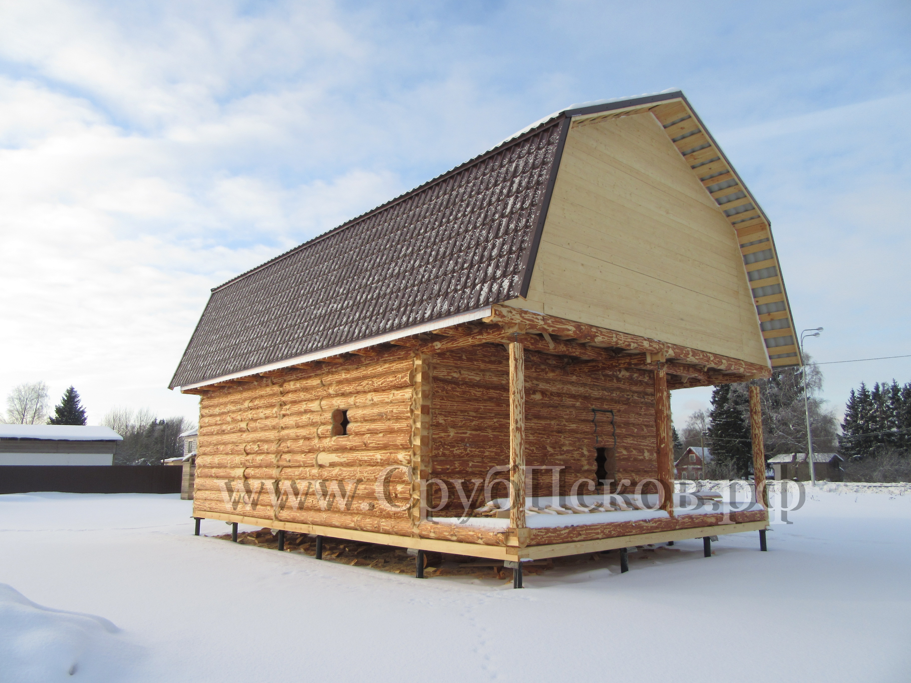 1. Первый это установка сруба дома "под усадку", что включает в себя - возведение фундамента, установка сруба и кровельные работы.